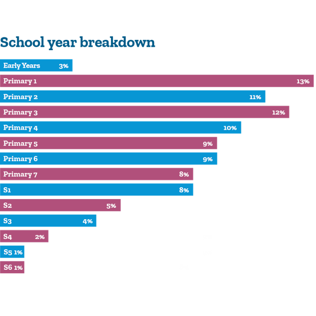 The survey attracted an overwhelmingly positive response, with an impressive 15,964 completed responses from parents in Scotland. We received responses from parents of children in every school year, from early years to Secondary 6. You can see the split of responses across the different school years below: