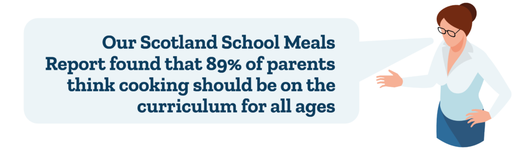 Inviting students into school kitchens to learn cooking skills alongside the catering team experts teaches practical life skills as well as helping children to understand fundamentals of food safety and nutrition. It’s also a guaranteed hit with parents: our Scotland School Meals Report found that 89% of parents think cooking should be on the curriculum for all ages, and a further 9% thought it should be included for secondary school pupils.