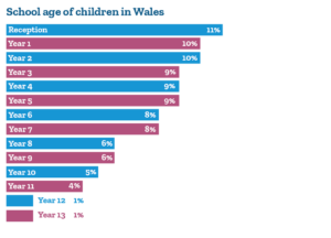 The survey we produced attracted an overwhelmingly positive response with an impressive 19,477 completed responses from parents in Wales. We received responses from parents of children in every school year, from early years to the end of secondary school. You can see the split of responses across the different school years below