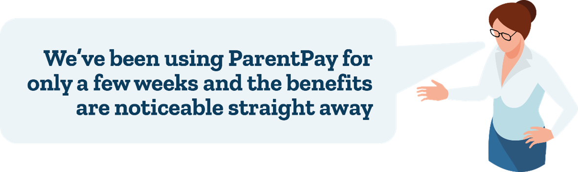 “We’ve been using ParentPay for only a few weeks and the benefits are noticeable straight away. One immediate benefit for admin staff is the reduced time spent recording payments from parents/carers We’ve only been live for a couple of weeks and there haven’t been any real challenges.”